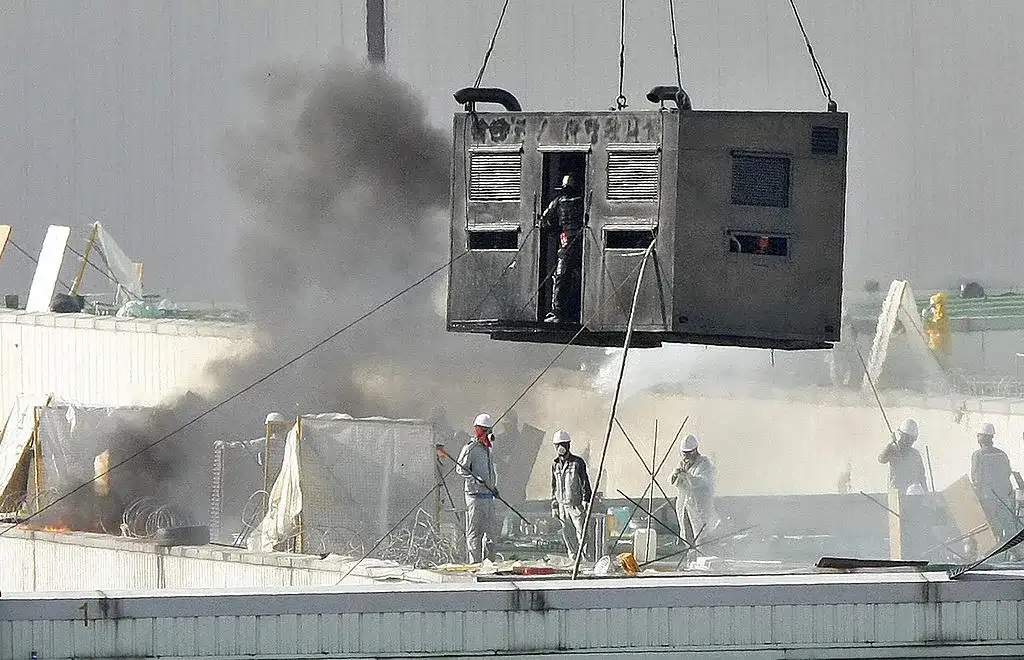 Grève des ouvriers de Ssangyong Motors en 2009, lors de laquelle la police était intervenue avec des lances à incendie et en montant dans des conteneurs