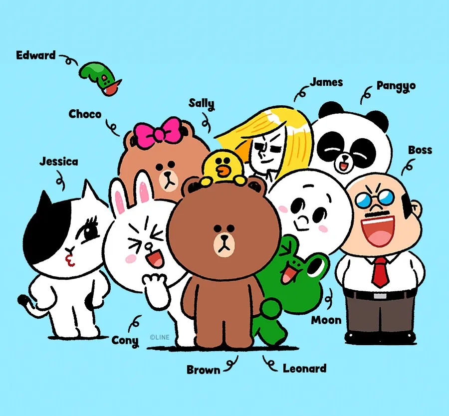 Les LINE FRIENDS (라인프렌즈), aussi appelés « BROWN & FRIENDS » entre 2018 et 2022, sont au nombre de 11.