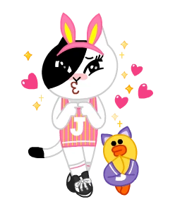 Sally (샐리/サリー) est une toute petite poussine avec un esprit très vif. Elle se comporte en vrai pot-de-colle avec Brown, qu’elle suit partout. De ce fait, elle apparaît aussi régulièrement aux côtés de Coni. Elle utilise souvent des astuces pour réclamer leur attention. Bien que présentée comme un personnage secondaire à l’origine, elle fait actuellement partie des personnages les plus populaires des LINE FRIENDS. Les fans se sont longtemps demandés si elle est une poule ou une cane. Suite à cela, LINE a publié plusieurs vidéos de clarification (1) (2) pour affirmer qu’elle est bien une poussine et non pas un caneton. Elle possède son propre compte Instagram.